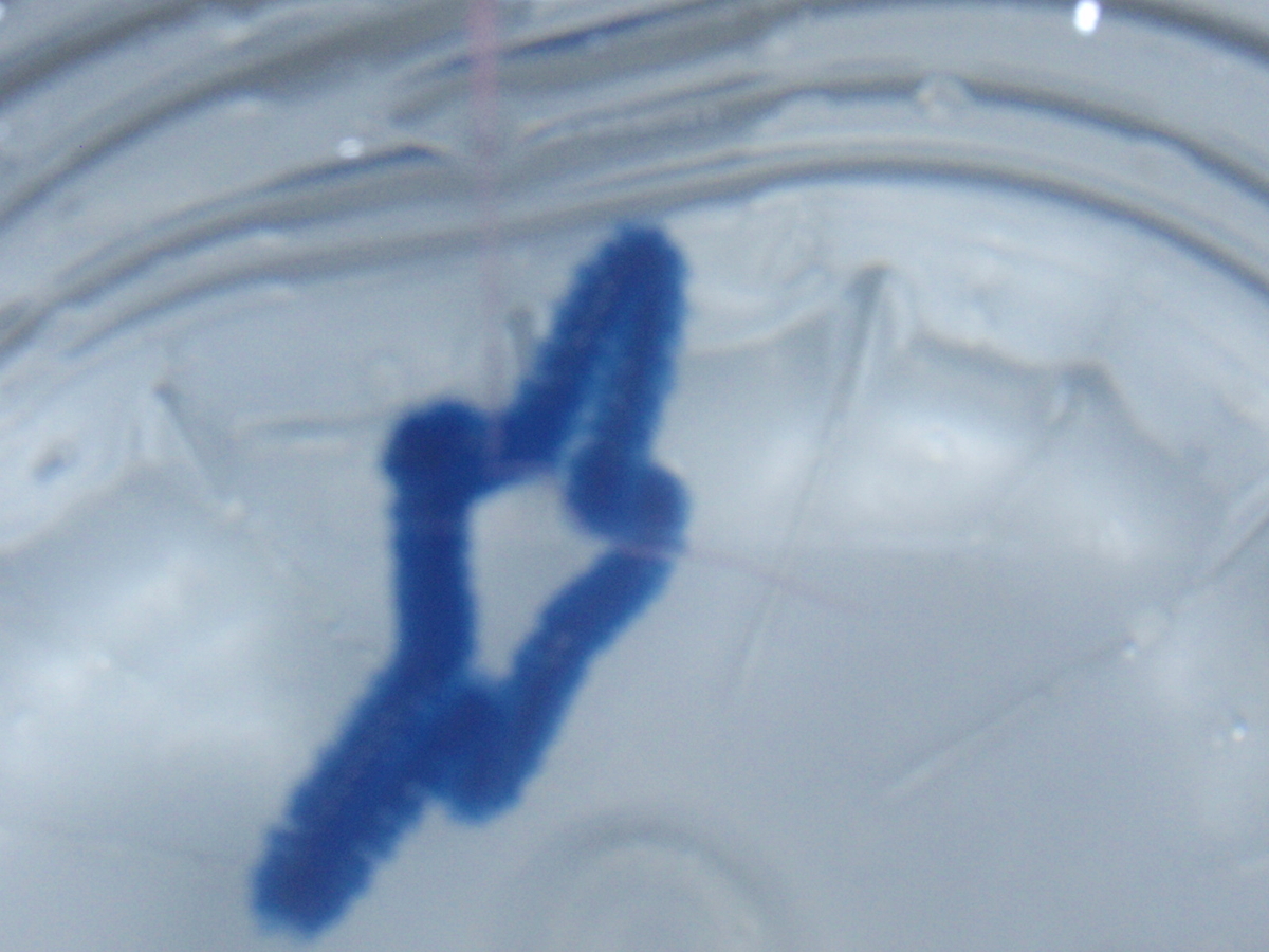 容器はペットボトルを切断したものです。割箸に糸を巻いてつるしました。